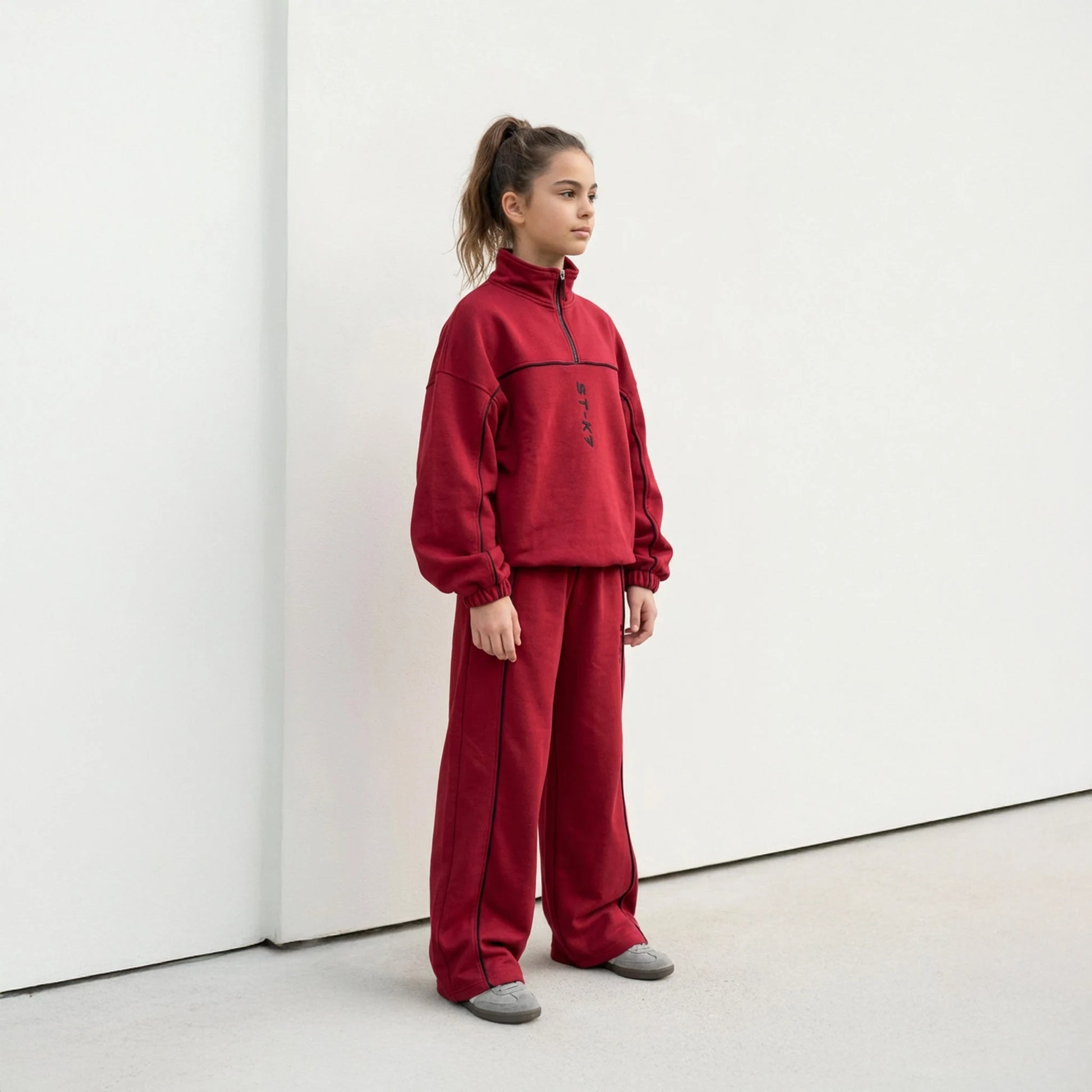 Kontrast şerit hatları ve dikey ST-K7 nakışı, minimal tarzı hareket özgürlüğüyle birleştirir.