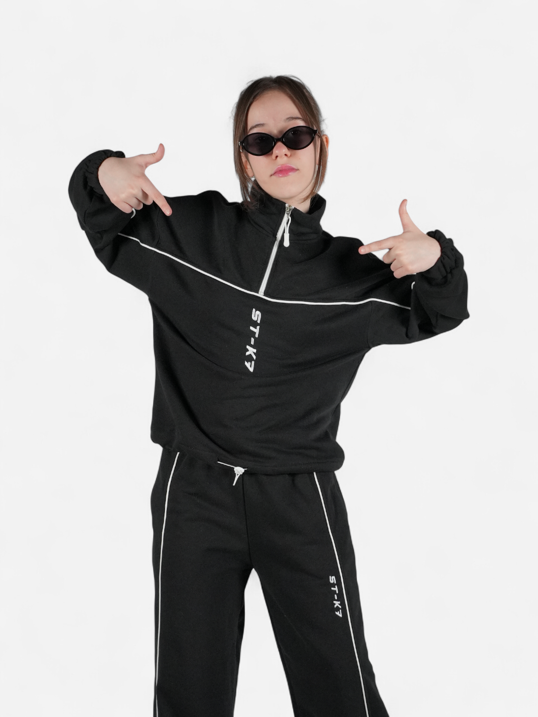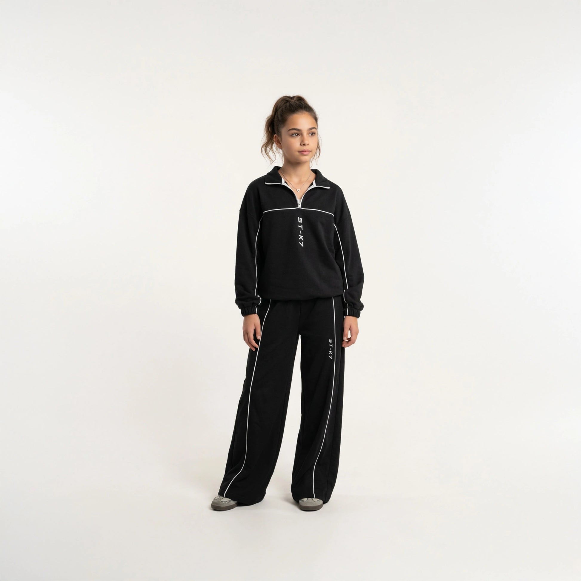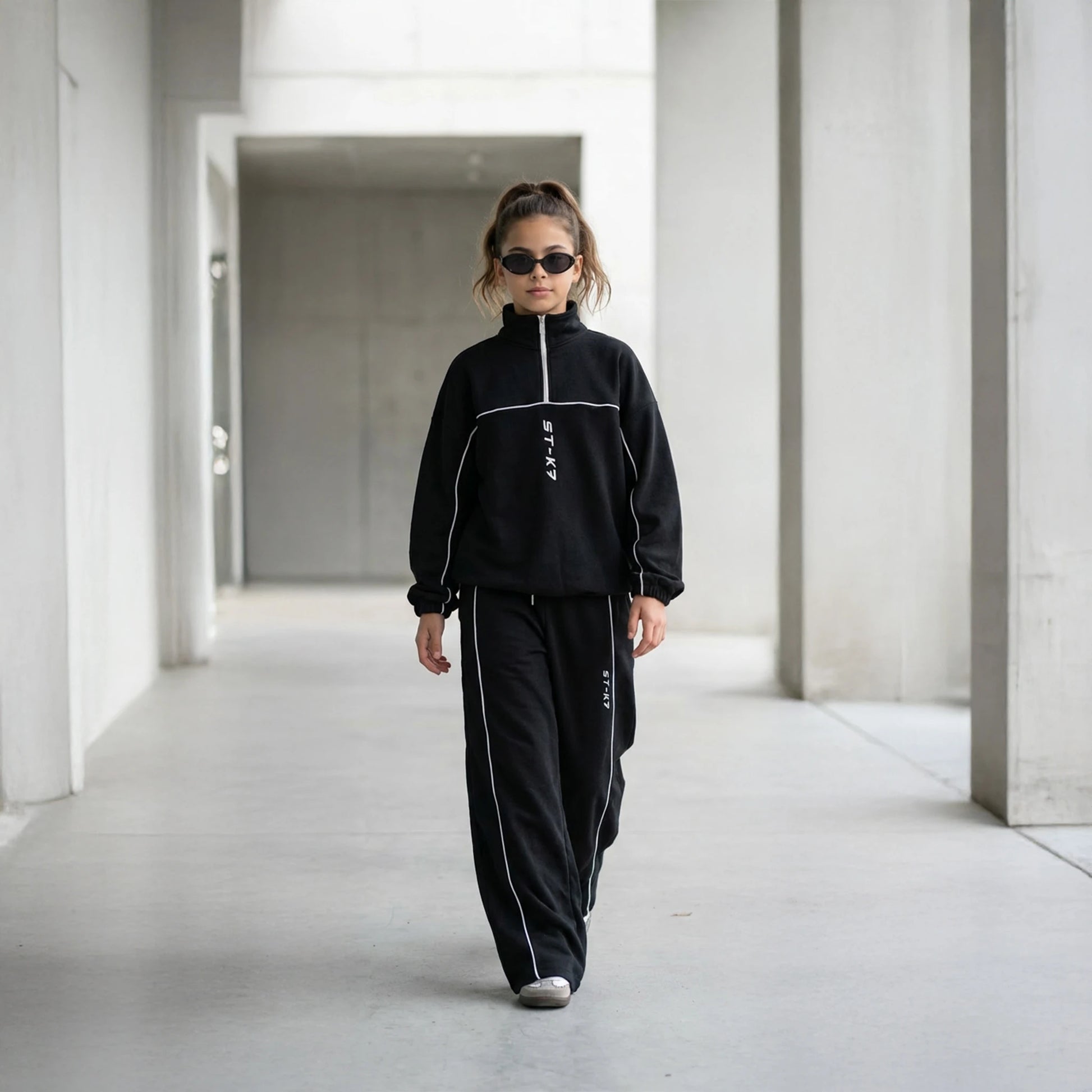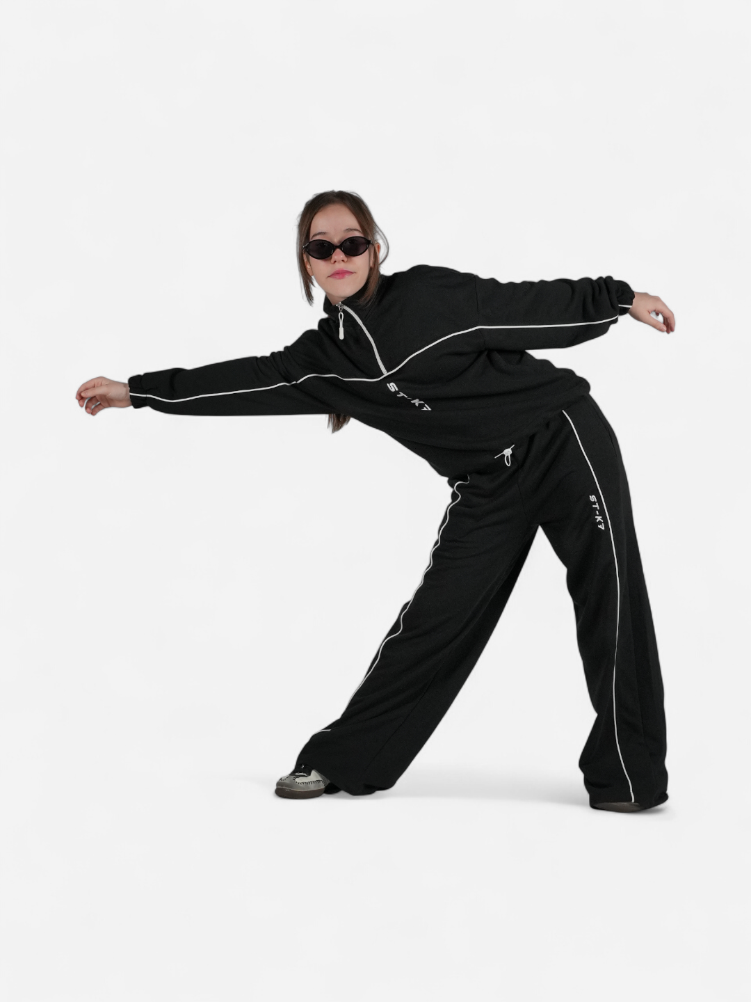 Kontrast şerit hatları ve dikey ST-K7 nakışı, minimal bir tarzla hareket özgürlüğünü birleştirir.